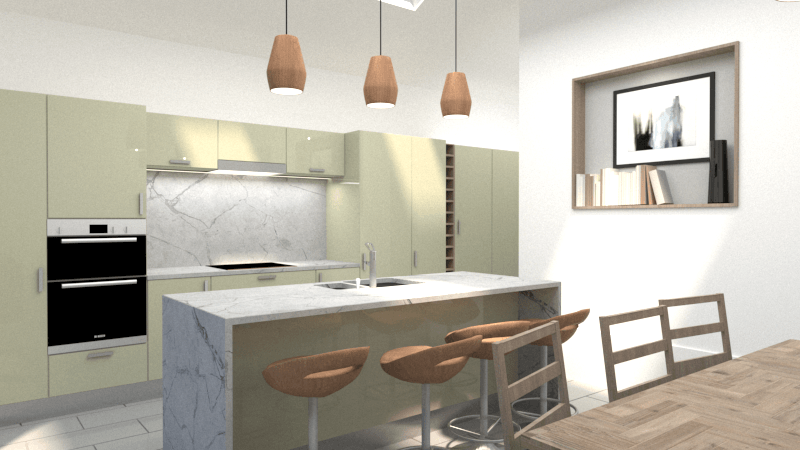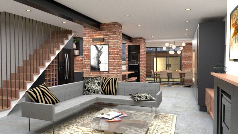 Open plan living style with emphasis on the connections between living, dining, kitchen and external patio & garden space.